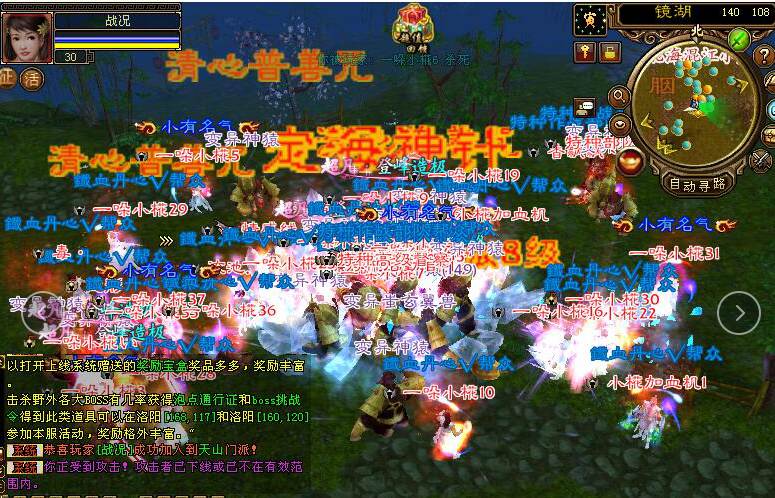 每隔2小时9大门派BOSS依次刷新,请注意系统